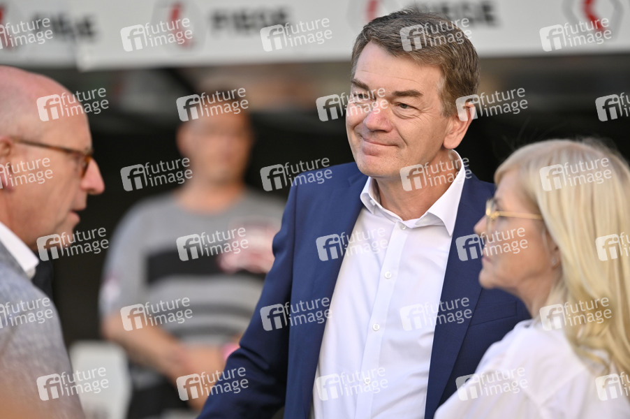 Markus Lewe und Jörg Schönenborn bei der Premiere des ARD-Krimis 'Tatort - Ein Freund, ein guter Freund' zum 20 jährigen Jubiläum des Münsteraner Tatorts im Preußenstadion. Münster, 30.08.2022