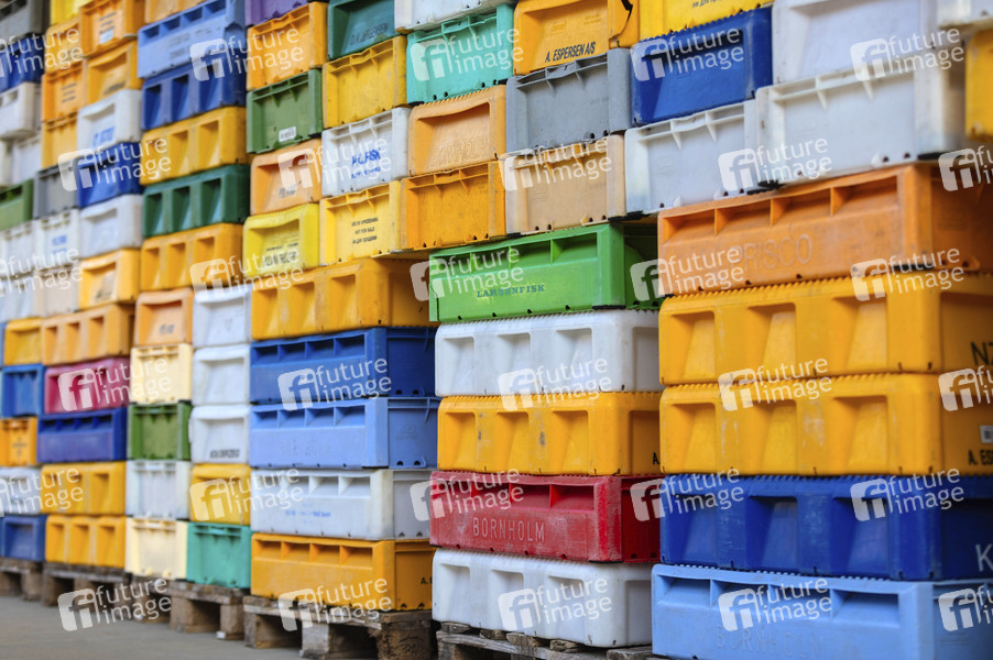 Fischerei, Finschfang, Ostseefischerei, Fischereigenossenschaften, Fischereigewerbe, Fischwirtschaft, Fischverarbeitung, Fischlagerung, Fischmarkt, Fischtransport, Fischfabrik, Rügen, Transportkisten, Kunststoffkisten
