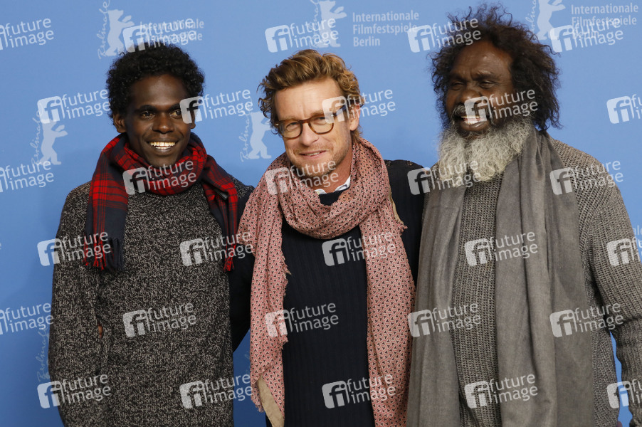 Jacob Junior Nayinggul, Simon Baker und Witiyana Marika beim Photocall zu 'High Ground' auf der Berlinale 2020 / 70. Internationale Filmfestspiele Berlin im Hotel Grand Hyatt. Berlin, 23.02.2020
