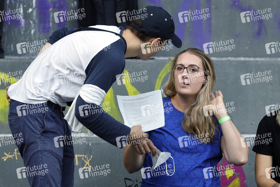Katharina Dröge bei einer Wahlkampfveranstaltung von Bündnis 90/Die Grünen auf dem Wilhelmplatz. Köln, 02.09.2021