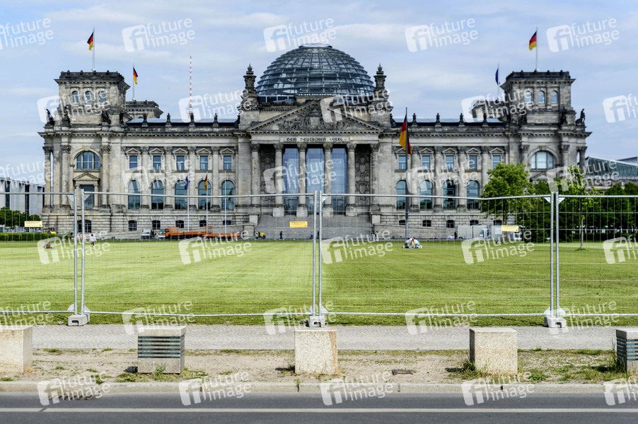 Absperrung, Absperrungen, Bauzaun, Bundestag, Erneuerung, gesperrt, Gras, Grünanlage, Grünflächenamt, Instandsetzung, Parlament, Parlamentsgebäude, Parlamentssitz, Rasenfläche, Rasenregeneration, Regierungsgebäude, Regierungsviertel, Reichstag, Reichstagsgebäude, Reichstagswiese, Sehenswürdigkeiten, Stadtlandschaft, Wiese, Zaun, Zäune