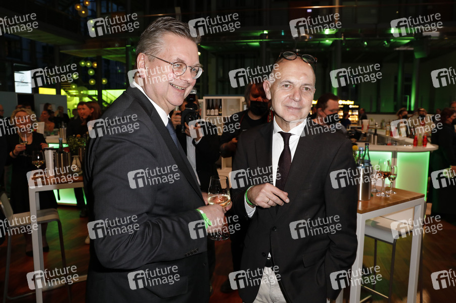 Reinhard Grindel und Bernd Neuendorf bei der Verleihung der Sepp-Herberger-Awards 2022 in der Telekom-Hauptstadtrepräsentanz. Berlin, 28.03.2022
