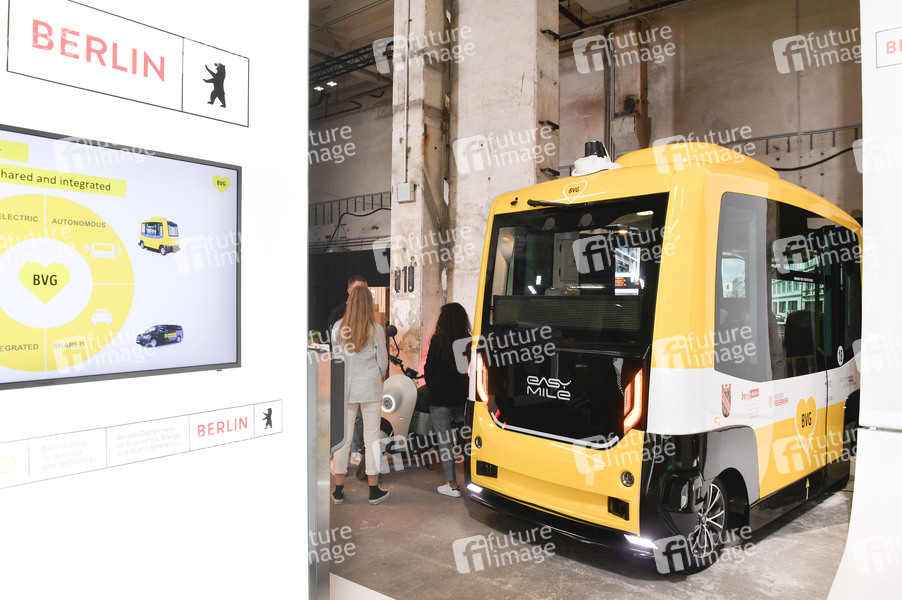 Ein Autonomer Bus der BVG ohne Fahrer beim Greentech Festival im Kraftwerk Berlin. Berlin, 18.09.2020