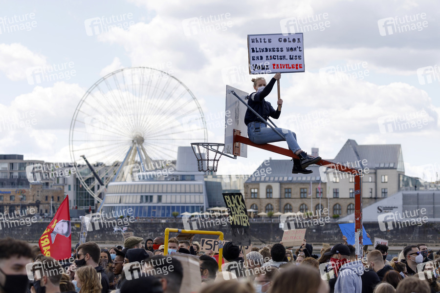 Teilnehmer der Anti-Rassismus-Demonstration von Black Lives Matter in der Deutzer Werft. Köln, 06.06.2020