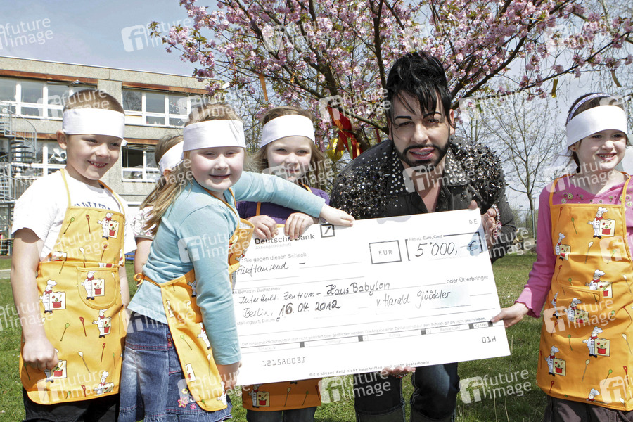 Scheckübergabe von Harald Glööckler an das Deutsche Kinderhilfswerk und den Babel e.V. in Hellersdorf, Berlin