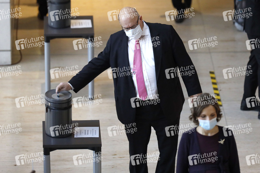 Peter Altmaier bei der Schlussabstimmung zum Gesetzentwurf zur Änderung des Erneuerbare-Energien-Gesetzes im Rahmen der 202. Sitzung des Deutschen Bundestages im Reichstagsgebäude. Berlin, 17.12.2020