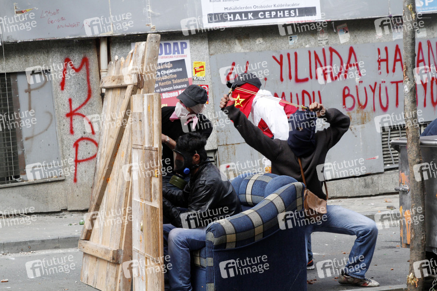 Ausschreitungen bei Maidemonstration im Stadtteil Besiktas. Istanbul, 01.05.2014