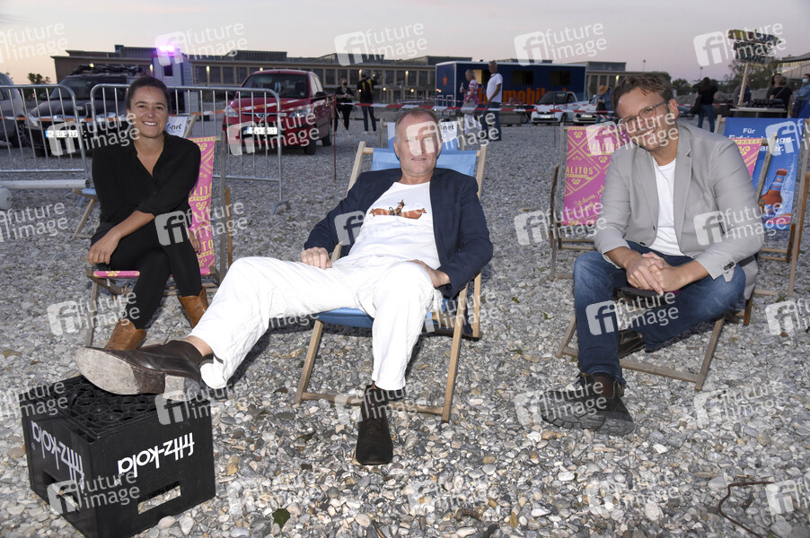 Julia Weigl, Ulrich Thomsen und Christoph Gröner bei der Premiere des Kinofilms 'Gutterbee' beim Filmfest München Pop-Up im PopUp Autokino auf dem Zenith Parkplatz. München, 26.08.2020