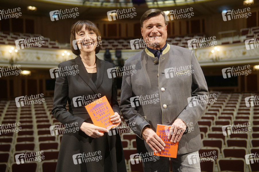Elisabeth Sobotka und Christian Thielemann bei der Pressekonferenz zur Präsentation des Spielplans 2024/25 an der Staatsoper Unter den Linden. Berlin, 13.05.2024