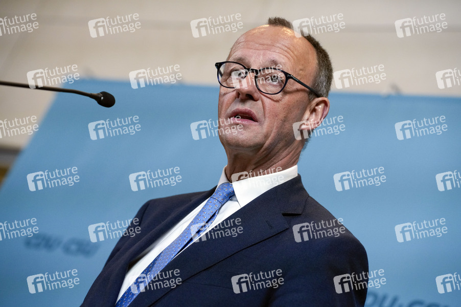 Friedrich Merz beim Pressestatement zur Fraktionssitzung der CDU/CSU-Bundestagsfraktion im Reichstagsgebäude. Berlin, 03.12.2024