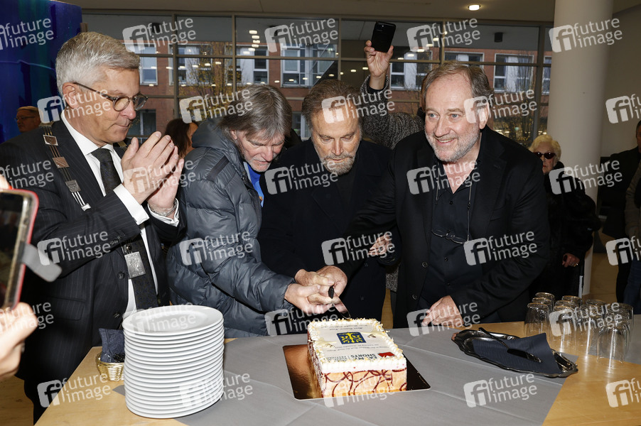 Erik O. Schulz, Bernhard Steinkühler, Franco Nero und Harold Faltermeyer beim Eintrag ins Goldene Buch der Stadt Hagen im Rathaus im Rahmen des 11. Eat My Shorts - Hagener Kurzfilmfestivals. Hagen, 16.11.2024