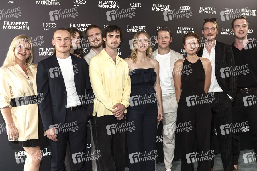 Elena Schwarz, Leonard Tondorf, Antonia Reinisch, Matti Schuldt, Aaron Hilmer, Magdalena Laubisch, Max von der Groeben, Sina Genschel, Daniel Sträßer und Max Jellinek bei der Premiere des ARD TV-Films 'Die Nichte des Polizisten' auf dem 42. Filmfest München 2025 in der Astor Film Lounge im Arri. München, 30.06.2025