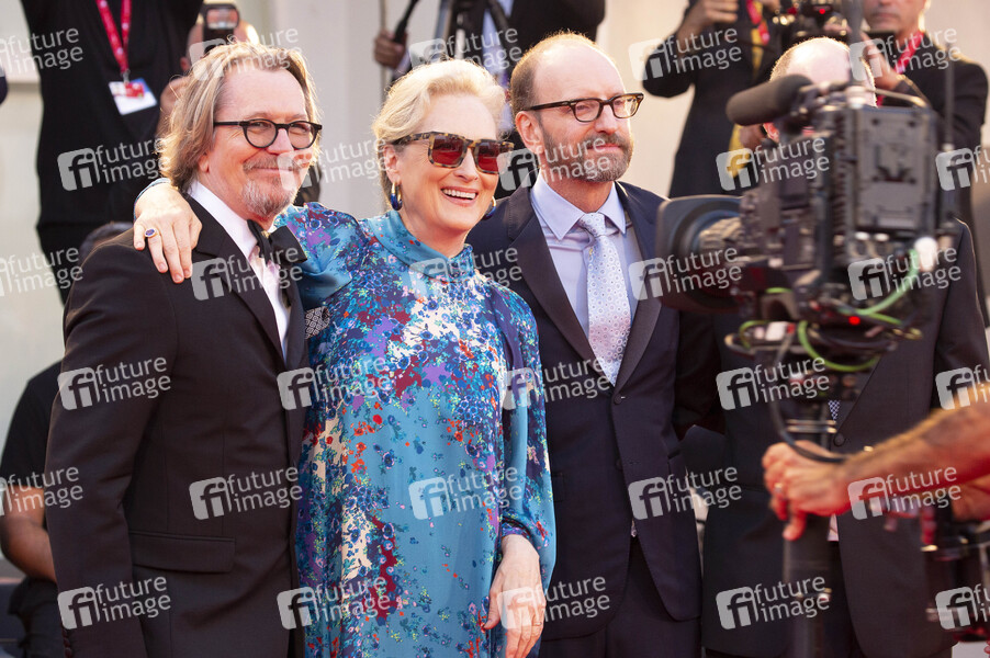 Gary Oldman, Meryl Streep und Steven Soderbergh bei der Premiere von 'The Laundromat / Die Geldwäscherei' auf der Biennale di Venezia 2019 / 76. Internationale Filmfestspiele von Venedig im Palazzo del Cinema. Venedig, 01.09.2019