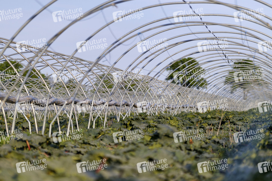 Rhabarber, Rheum rhabarbarum, Plantage, Ackerbau, Landwirtschaft, Gemüse, Folientunnel, Foliendach, Rhabarberplantage, Gewächshaus, Anbau, Acker, Ernte, Rhabarberstangen, Bauernhof, Knöterich, Knöterichgewächse, Bewirtschaftung, Photosynthese, Fotosynthese, Kultivierung, Pflanzung, Pfllanzenaufzucht, Selbstversorger, Standort, Bewässerung, Garten, Nutzgarten, Gartenbau, Symbolbild, Symbolfoto