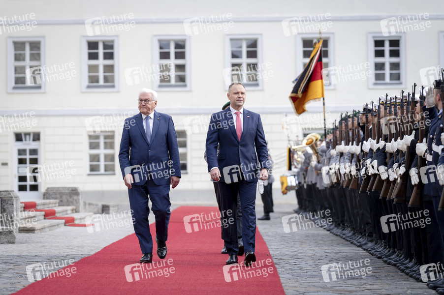 Frank-Walter Steinmeier und Karol Nawrocki bei der Begrüßung des Präsidenten der Republik Polen mit militärischen Ehren und zum gemeinsamen Gespräch im Schloss Bellevue. Berlin, 16.09.2025