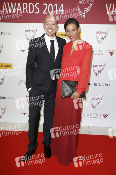 Annabelle Mandeng und Freund Matthias Pieper bei der 9. Victress Awards Gala im andel’s Hotel. Berlin, 28.04.2014