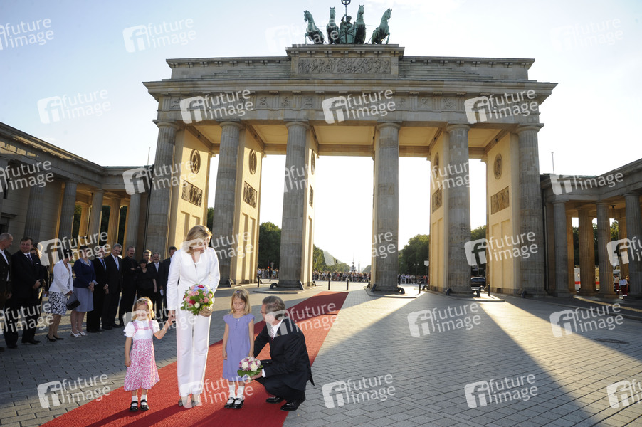 Christian Wulff und Gattin Bettina werden von den Kindern Marla Charlotte Badge (3 Jahre) und Sophia Julie Langner (4 Jahre) begrüßt