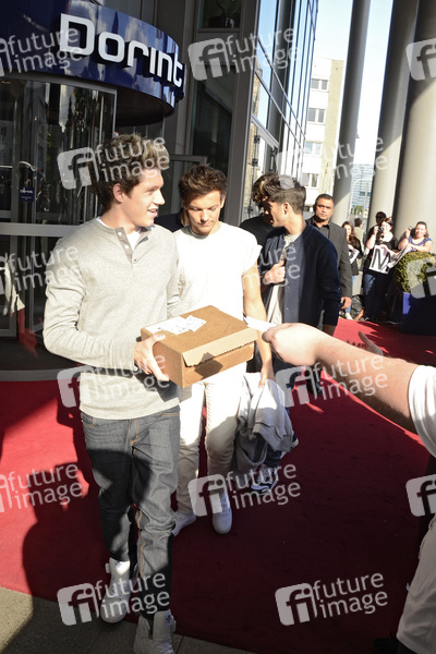 Die Band One Direction verlässt das Dorint Hotel auf dem Weg zu einer Autgrammstunde im Mediapark, Köln