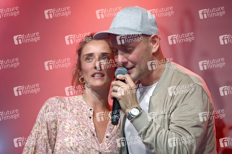 Oli.P / Oliver Petszokat mit Ehefrau Pauline Schubert bei der Präsentation seines Albums 'Alles Gute!' im Carlswerk Victoria. Köln, 11.08.2019