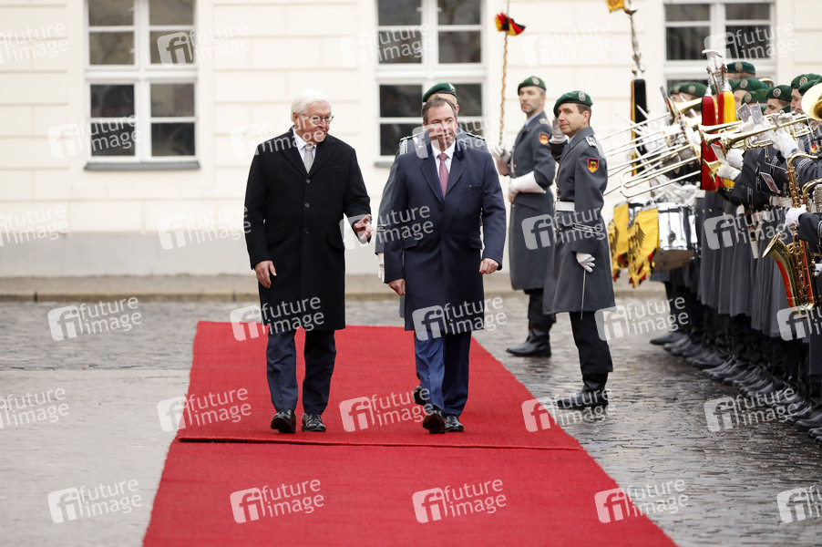 Frank-Walter Steinmeier und Guillaume V. Großherzog von Luxemburg bei der Begrüßung des Großherzogs von Luxemburg mit militärischen Ehren und zum gemeinsamen Gespräch im Schloss Bellevue. Berlin, 27.10.2025