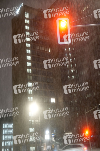 Schneeregen am Springer Hochhaus. (Symbolbild, Symbolfoto) Berlin, 05.01.2025