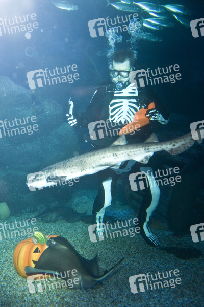 Unterhaltung, Entertainment, Taucher, Tauchen, Skelett, Fische, Sea Life Berlin, Halloween Aktion, Unterwasser, Tiere, Fische, Meeerestiere, Meeresbewohner