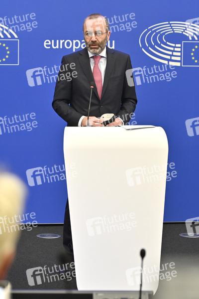 Manfred Weber beim Pressebriefing Fraktion der Europäischen Volkspartei im Europäischen Parlament. Straßburg, 05.04.2022