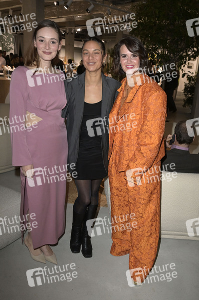 Maria Ehrich, Taneshia Abt und Yara Hoffmann bei der Ausstellungseröffnung Ruinart Maison 1729 Kunst Pop-up am Tacheles anlässlich des Gallery Weekends. Berlin, 24.04.2024