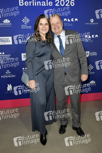 Rodrigo de Lima Baena Soares mit Ehefrau Luciana Baena Soares bei der Soiree francaise du cinema mit der Verleihung des französischen Kulturordens Ordre Officier des Arts et des Lettres im Rahmen der Berlinale 2026 / 76. Internationale Filmfestspiele Berlin in der Französischen Botschaft. Berlin, 16.02.2026