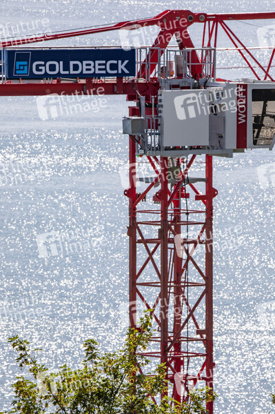 Turmdrehkran am Bodensee für neues städtisches Parkhaus am Fährhafen. Meersburg, 27.05.2020