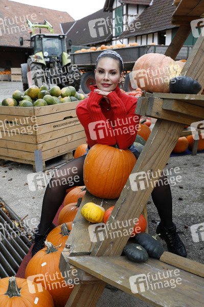 Prominenz, Celebrity, Celebrities, Fotoshooting, Fototermin, Unterhaltung, Entertainment, Halloween, Kürbis, Partyvorbereitungen, Bauernhof, Model, Moderatorin