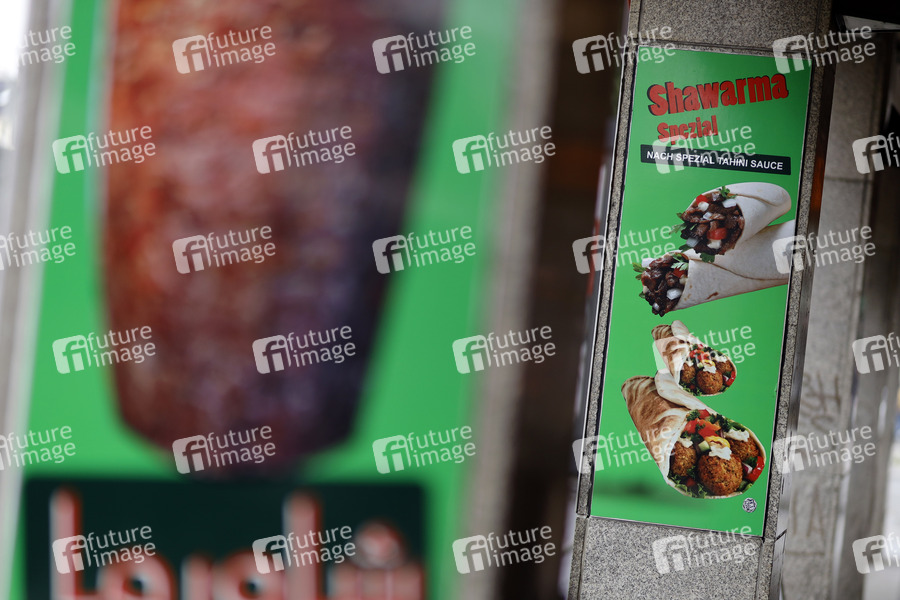 Döner, Dönerfleisch, Dönerspieß, türkische Pizza, Falafel, Pizza, Essen, Lebensmittel, Hygiene, Imbissbetriebe, Getränke, Soft Drinks, Dönergrill, Hähnchen, Lamm, Hähnchenfleisch, Lammfleisch, Kebab, Schawarma, Shawarma, arabische Küche, Köfte, Dönerladen, Halal, Symbolfoto, Symbolbild