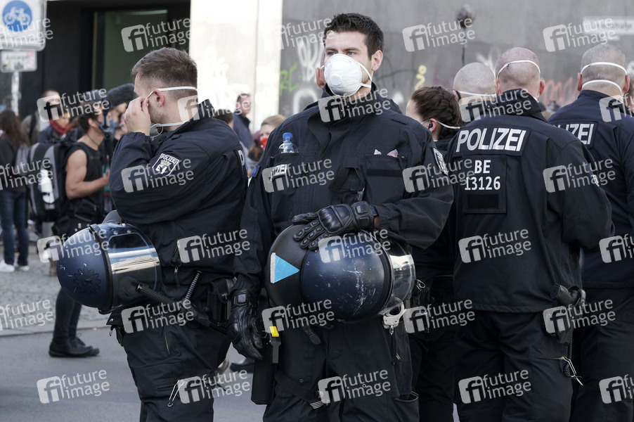 Demo, Demonstranten, Demonstration, Erster Mai, Feiertag, Maidemo, Mai-Demo, Politik, Protestplakat, Tag der Arbeit, Corona, Sars-CoV-2, Covid-19, Coronavirus, Coronaviren, Corona-Virus, Coronakrise, Corona-Krise, Corona-Pandemie, Coronamaßnahmen, Corona-Schutz, flatten the curve, Ausnahmesituation, Atemschutz, Atemschutzmaske, Virenschutz, Schutzmaske, Schutzmasken, Atemschutzmasken, Maske, Masken, Mundschutz, Mund-Schutz, Mundschutzpflicht, Maskenpflicht, Mundschutz-Pflicht, Mund-Nase-Schutz, Mund-Nasen-Schutz, MNS, Vermummung, Kontaktverbot, Versammlungsverbot, Mindestabstand, Social Distancing, Kontakt verboten, Ausgangsbeschränkung, Abstand, Abstandhalten, Abstandsregel, Abstandsregeln, Polizei, Polizeieinsatz, Polizeibeamte, Polizeipräsenz, Polizist, Polizisten, Sicherheitskräfte