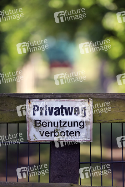 Ein Schild 'Privatweg - Benutzung verboten' hängt an einem Tor an einem Gehöft bei Köln. (Themenbild, Symbolbild) Köln, 14.06.2021