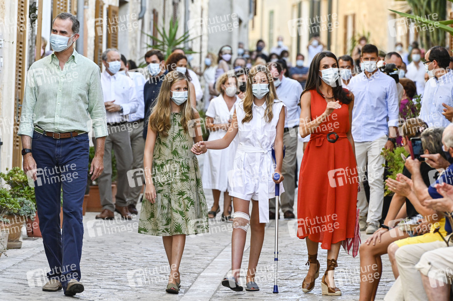 König Felipe VI. von Spanien, Kronprinzessin Leonor von Spanien, Prinzessin Sofia von Spanien und Königin Letizia von Spanien besuchen das Geburtshaus und Museum von Fray Junipero Serra und das Franziskanerkloster Fray Bartolomé auf Mallorca. Petra, 10.08.2020