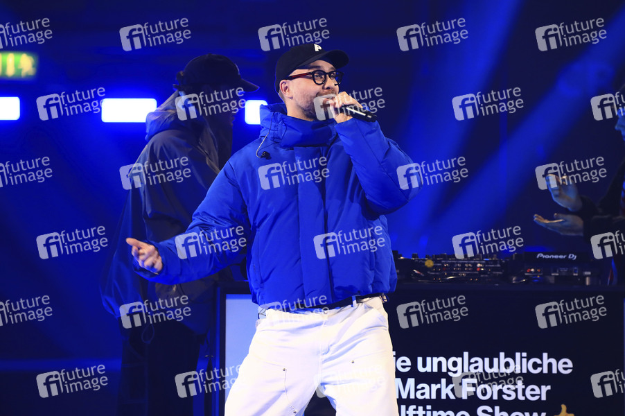 Mark Forster in der TV Show 'American Ice Football' in der SAP Arena. Mannheim, 11.02.2024