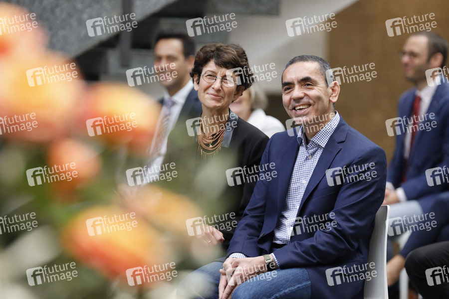 Özlem Türeci und Ugur Sahin, die Gründer des Biotechnologie-Unternehmens Biontech, bei der Verleihung der Ehrendoktorwürde der Medizinischen Fakultät der Uni Köln und der Eintragung ins Goldene Buch der Stadt Köln. Köln, 17.09.2021