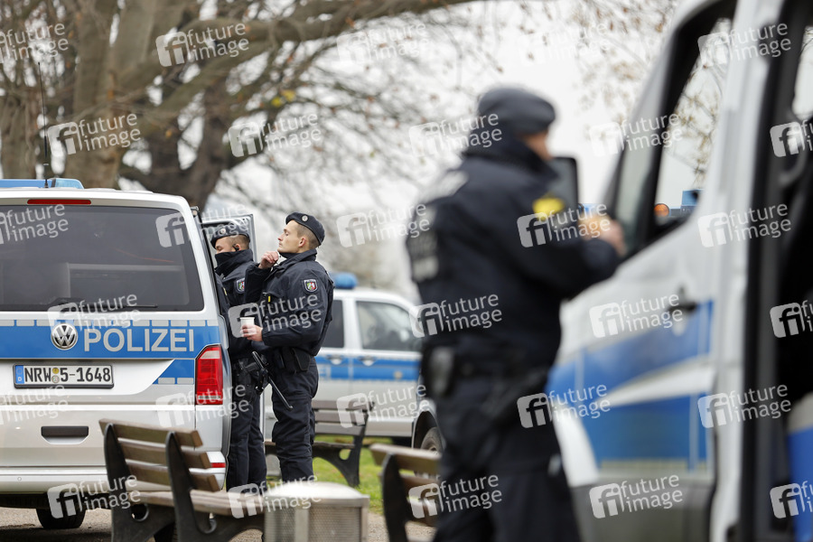 Polizeiaufgebot anlässlich der Querdenken-Demo im Rheinpark Golzheim. Düsseldorf, 06.12.2020