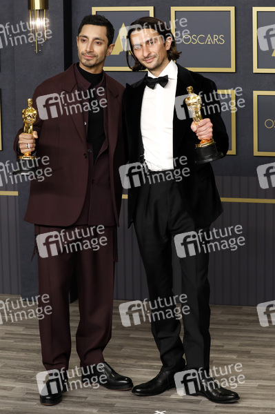 Riz Ahmed und Aneil Karia mit den Oscars für den besten Kurzfilm 'The Long Goodbye' im Press Room der Oscar Verleihung 2022 / 94th Annual Academy Awards im Hollywood & Highland Center. Los Angeles, 27.03.2022