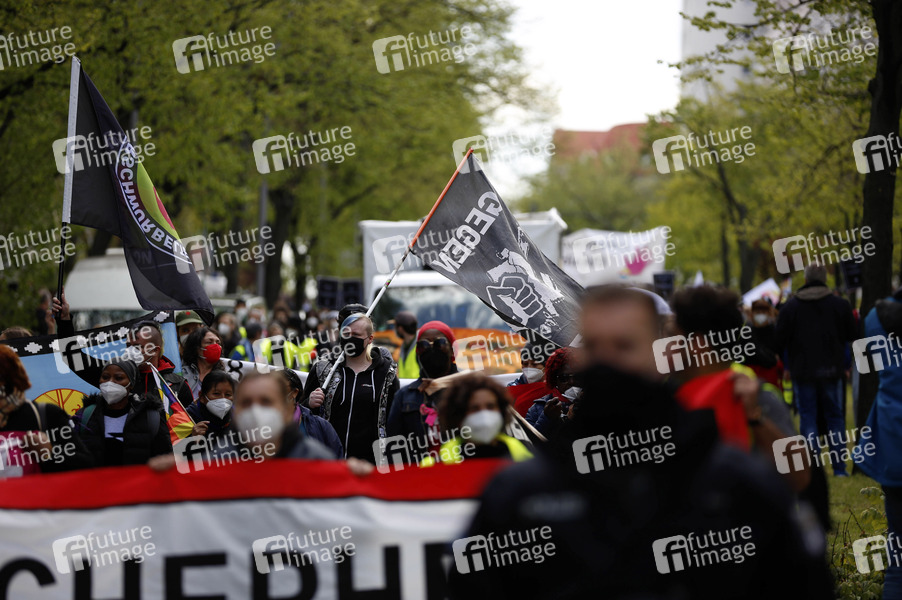 Mehrere tausend Menschen haben in Kreuzberg und Neukölln unter dem Motto 'Ihr seid keine Sicherheit' gegen Rassismus und Gewaltübergriffe durch Polizisten demonstriert. Der Protest war Teil eines bundesweiten Aktionstages, an dem in insgesamt 14 deutschen Städten Menschen aus antirassistischen Motiven auf die Straße gingen.(Quelle:tagesspiegel.de). Berlin, 08.05.2021