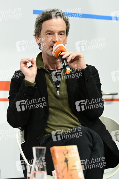 Jörg Hartmann im Gespräch zu seinem Buch 'Der Lärm des Lebens' am Messestand Deutschlandradio auf der Leipziger Buchmesse 2024 auf dem Messegelände. Leipzig, 21.03.2024