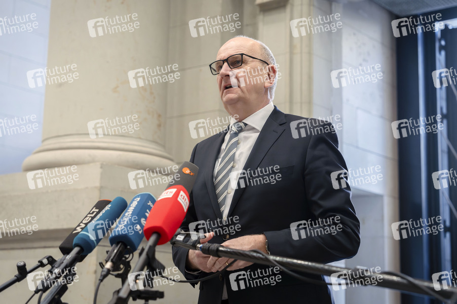 Dietmar Woidke beim Pressestatement am Rande der 1062. Sitzung des Bundesrates im Plenarsaal des Preußischen Herrenhauses. Berlin, 06.03.2026