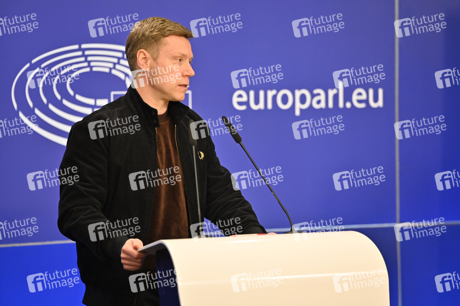 Martin Schirdewan bei einer Pressekonferenz der Fraktion Die Linke zum Krieg in der Ukraine im Europäischen Parlament. Brüssel, 01.03.2022