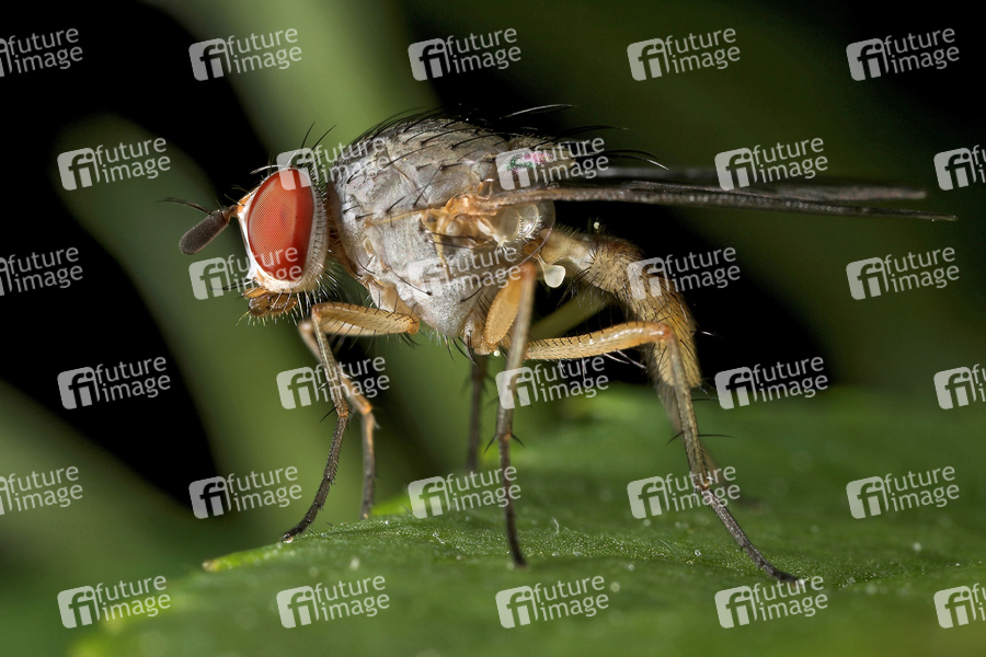 Eine kleine Fliege auf einem Brennesselblatt