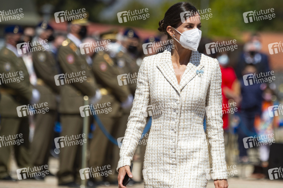Königin Letizia von Spanien bei der Zeremonie der Übergabe der Nationalflagge an die ACAVIET (Luftfahrtakademie der Armee) in der Helipuerto Base Coronel Mate. Colmenar Viejo, 07.05.2021
