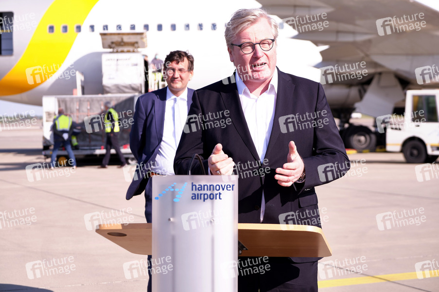 Politiker, CDU, niedersächsischen Minister für Wirtschaft Arbeit Verkehr und Digitalisierung, Flughafen Hannover-Langenhagen, Flugzeug, Corona, Sars-CoV-2, Covid-19, Coronavirus, Coronaviren, Corona-Virus, Coronakrise, Corona-Krise, Corona-Pandemie, Coronamaßnahmen, Corona-Schutz, Ausnahmesituation, Atemschutz, Atemschutzmaske, Virenschutz, Schutzmaske, Schutzmasken, Atemschutzmasken, Maske, Masken, Mundschutz, Mund-Schutz, Mundschutzpflicht, Maskenpflicht, Mundschutz-Pflicht, Mund-Nase-Schutz, Mund-Nasen-Schutz, MNS