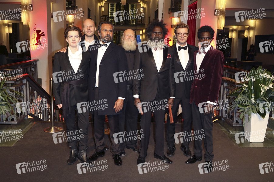Maximillian Johnson, Bill Thompson, Aaron Pedersen, Jack Thompson, Witiyana Marika, Simon Baker und Jacob Junior Nayinggul bei der Premiere von 'High Ground' auf der Berlinale 2020 / 70. Internationale Filmfestspiele Berlin im Friedrichstadt-Palast. Berlin, 23.02.2020