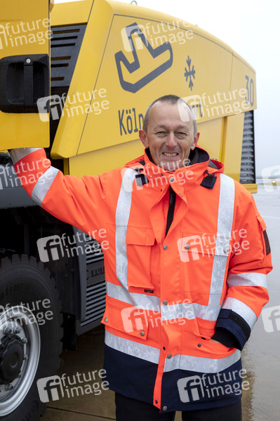 Johan Vanneste beim Presse-Fototermin zum Winter-Fuhrpark des Flughafens Köln Bonn Airport. Köln, 11.12.2019