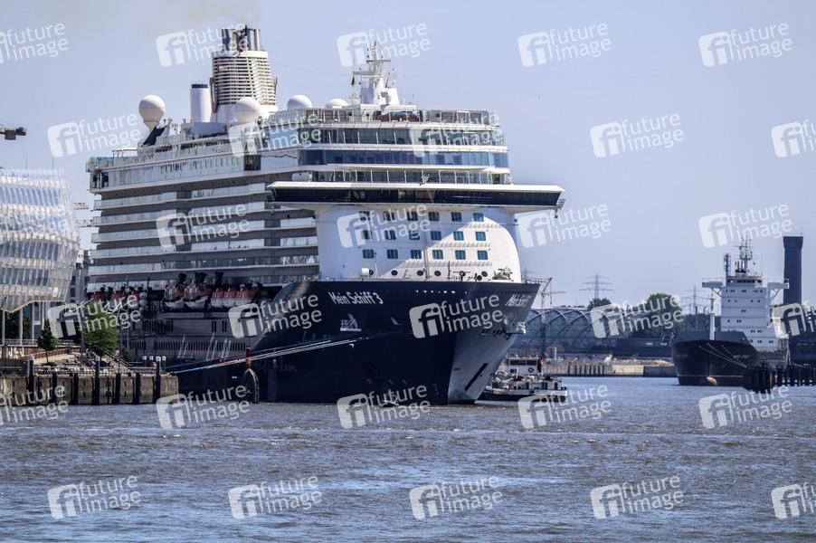 Das Kreuzfahrtschiff 'Mein Schiff 3' der Hamburger Reederei TUI Cruises hat einen Liegeplatz in der Hansestadt Hamburg eingenommen. TUI Cruises plant den Betrieb mit kurzen drei- bis vier-tägigen Kurzkreuzfahrten noch diesen Sommer wiederaufzunehmen. Hamburg, 17.06.2020