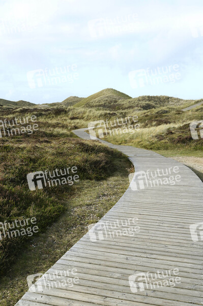 Holzbohlenweg durch Dünenlandschaft auf der Insel Amrum. 22.10.2020